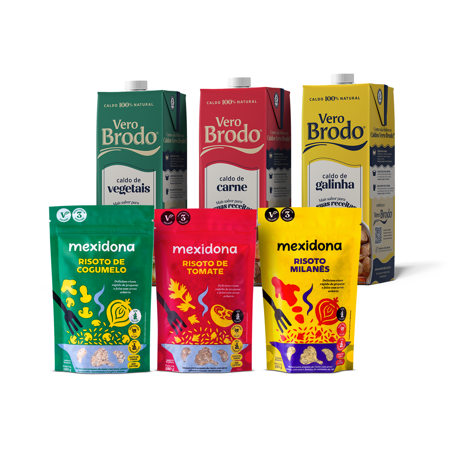 O Kit Gourmet traz o melhor dos dois mundos: a cremosidade e praticidade dos risotos Mexidona, combinados com o sabor intenso e robusto dos caldos Vero Brodo. Os caldos Vero Brodo realçam o sabor e deixam os risotos Mexidona ainda mais cremosos. 3🥩 Caldo de Carne 3🍗 Caldo de Galinha 3🥕 Caldo Vegetais 3🍄Risoto de Cogumelos 3🍅 Risoto de Tomate 3🍚 Risoto Milanês Risotos e caldos com ingredientes 100% naturais, zero aditivos, sem glúten, sem lactose, sem conservantes e realçadores de sabor. Prepare um jantar especial em poucos minutos, com menos louça e mais tempo para aproveitar o momento.