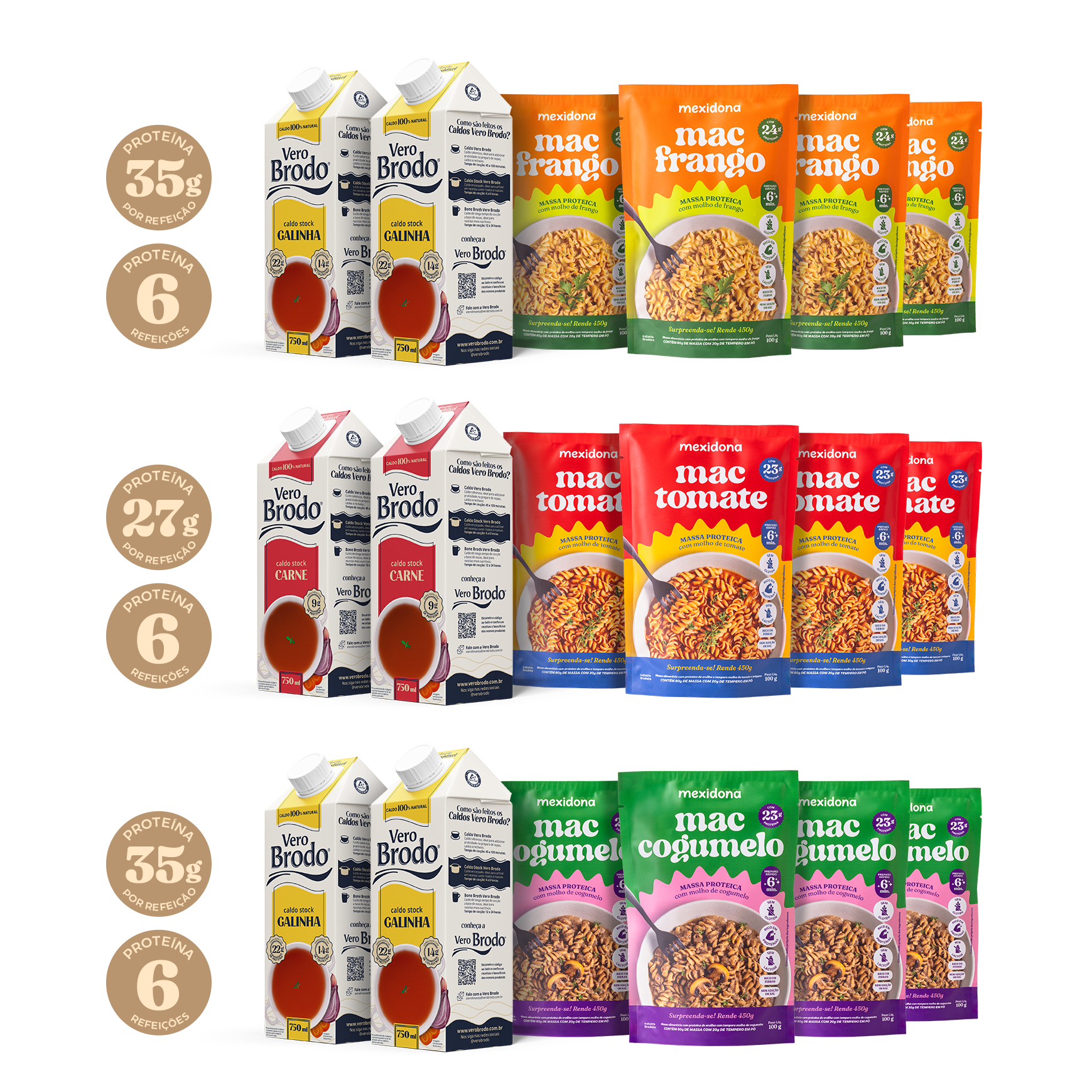 Os Macs Proteína Mexidona, preparados com os caldos Stock Vero Brodo, formam uma combinação poderosa de sabor e performance: mais proteína, mais colágeno, mais intensidade em cada garfada.