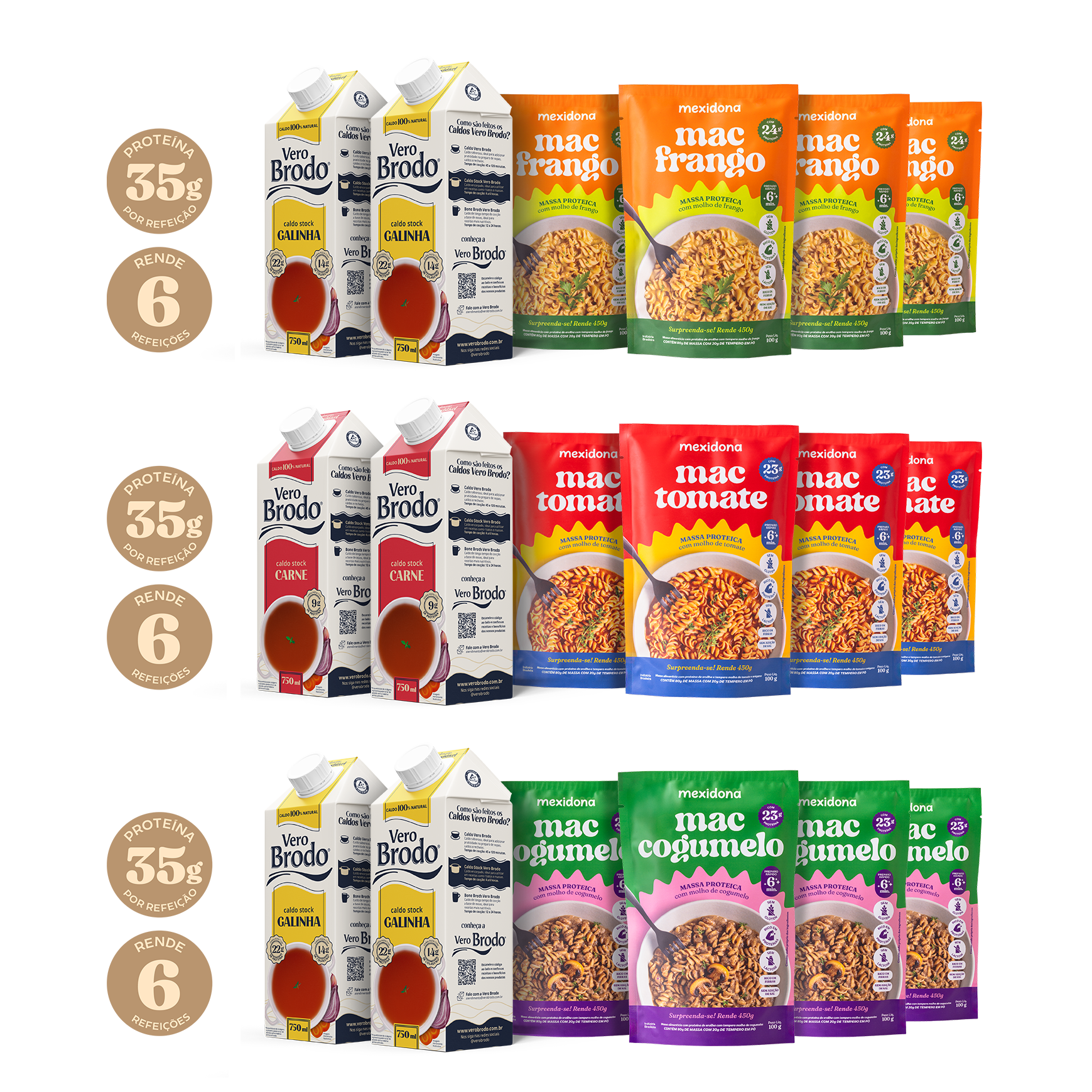 Os Macs Proteína Mexidona, preparados com os caldos Stock Vero Brodo, formam uma combinação poderosa de sabor e performance: mais proteína, mais colágeno, mais intensidade em cada garfada.